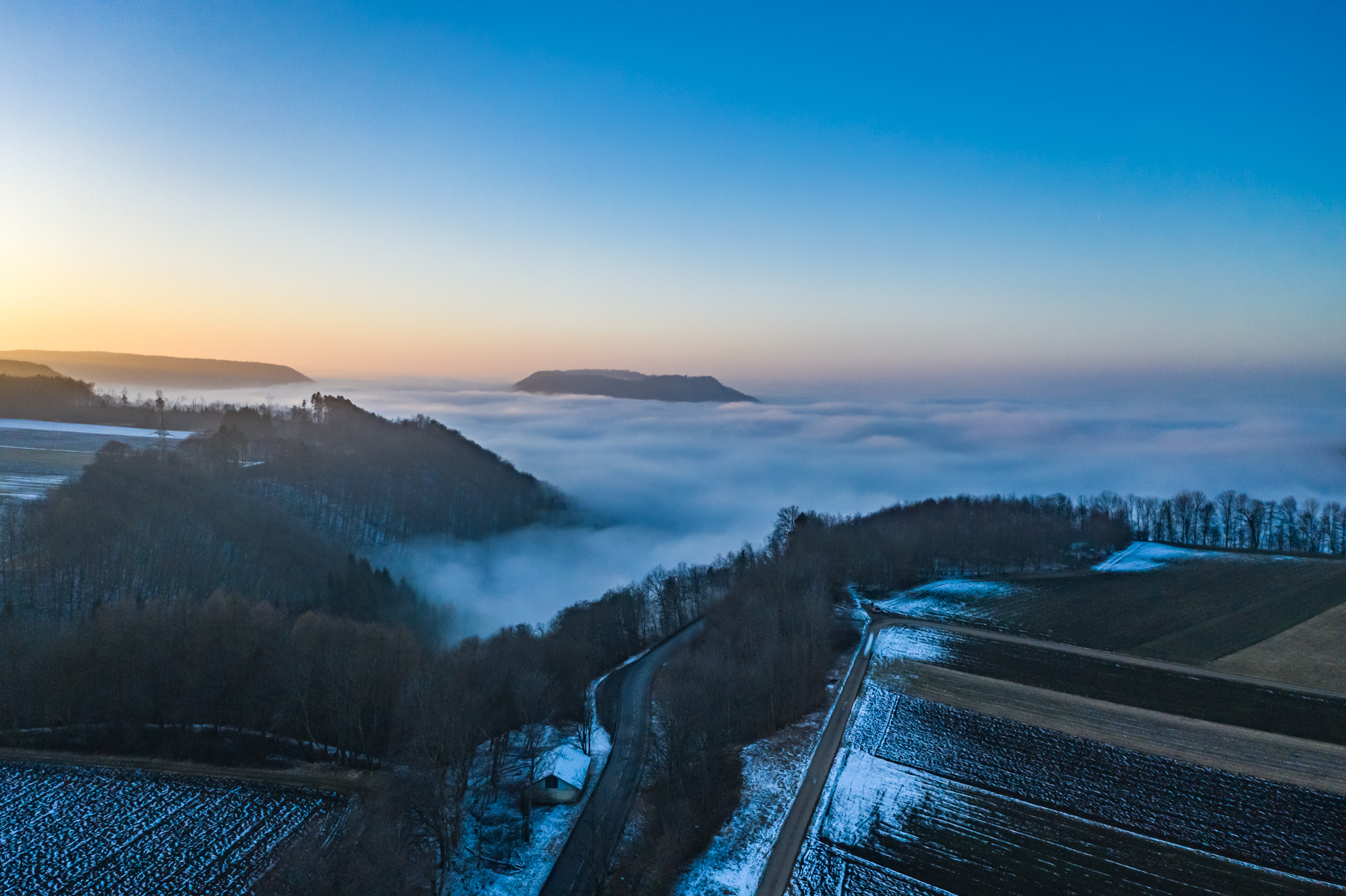 Wenn der Albtrauf im abendlichen Nebel versinkt